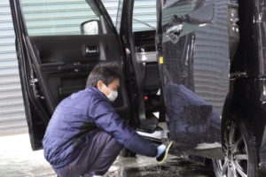 そして、新車の場合でもドアの内側、細かな隙間部分、洗車で落とし切れないボディーの汚れも特殊溶剤を使用して分解除去していきます(=゚ω゚)ノ