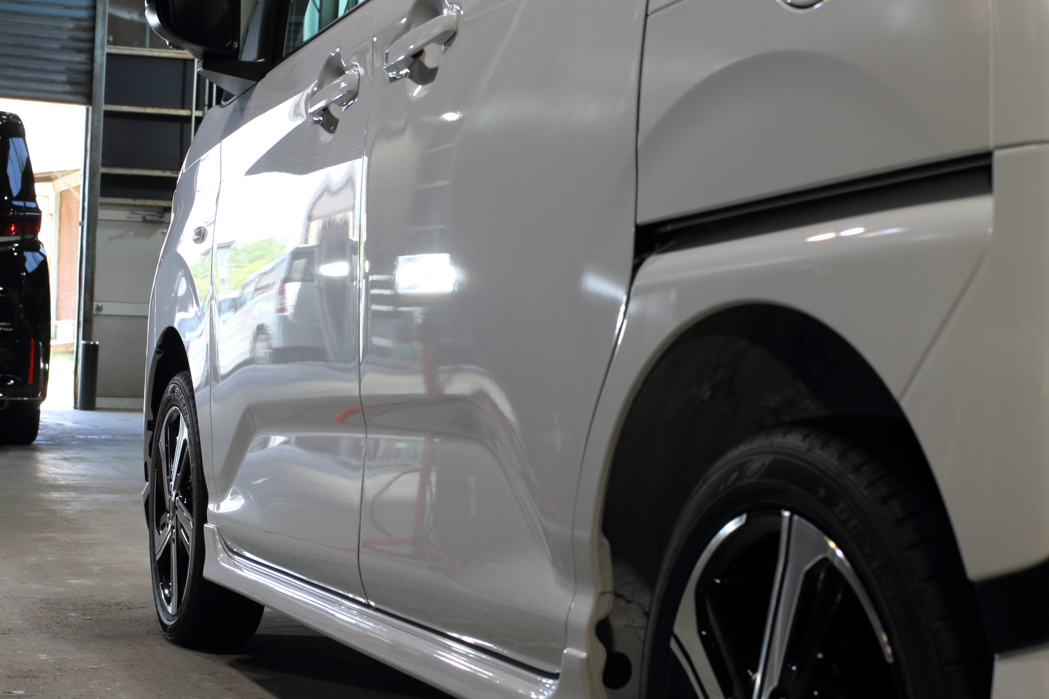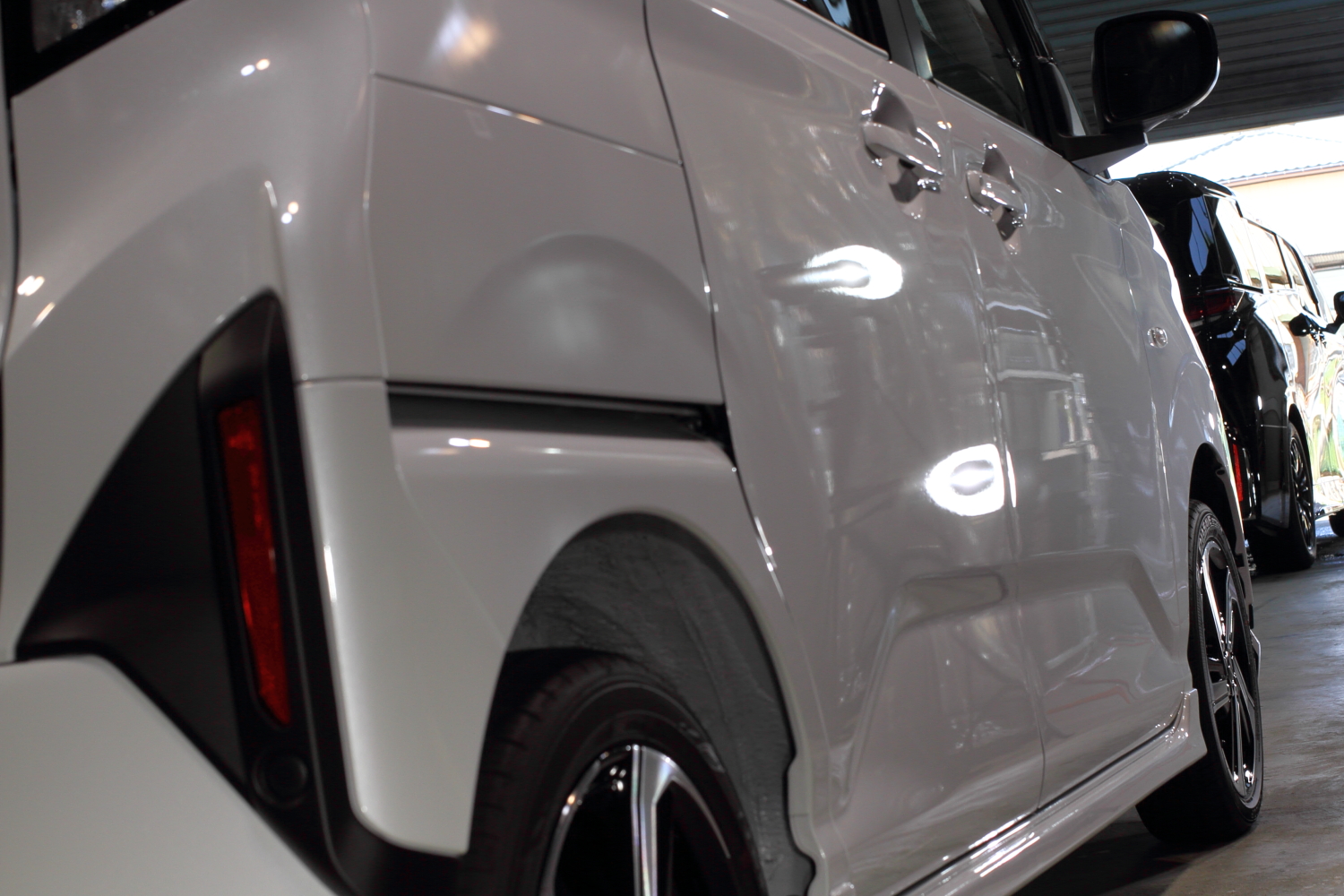 →料金には、汚れの分解除去、状態確認、磨き作業、ヘッドライトやテールレンズ、未塗装樹脂部分、(ホイールコーティング、)ドアの内側のコーティングも含まれます。