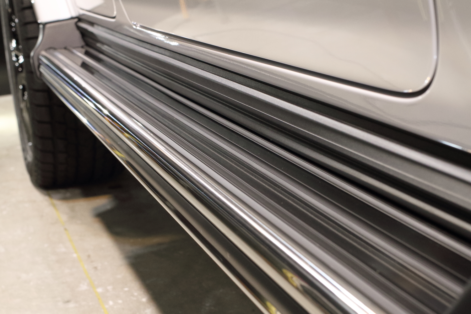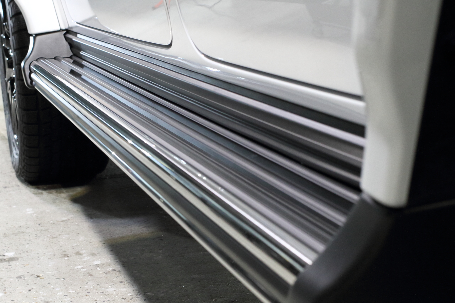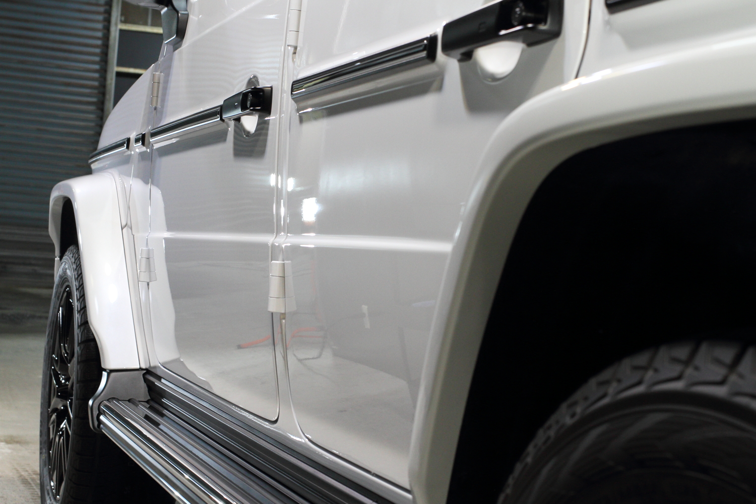 →料金には、汚れの分解除去、状態確認、磨き作業、ヘッドライトやテールレンズ、未塗装樹脂部分、(ホイールコーティング、)ドアの内側のコーティングも含まれます。