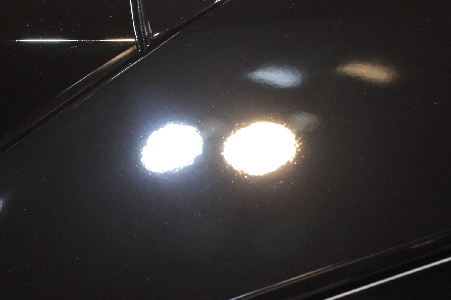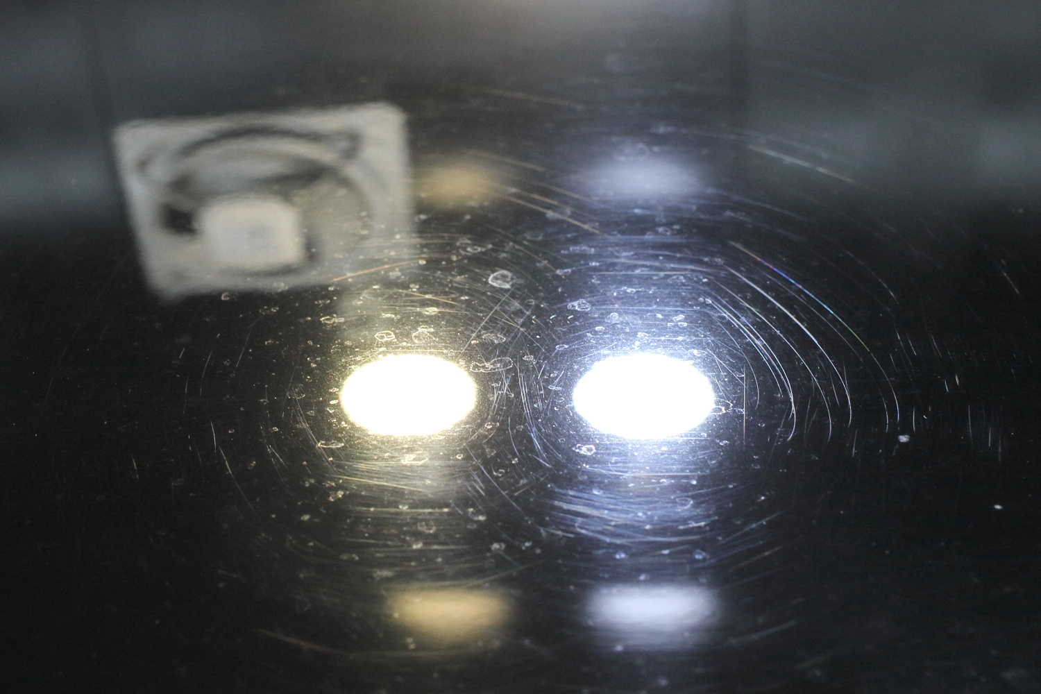 深く入ったキズや浸食部分は、特殊照明環境下の高性能カメラで撮影しておりますので、見切った部分が写り込んでおりますが、屋外では注視しないと見えないレベルのものですのでご安心ください。