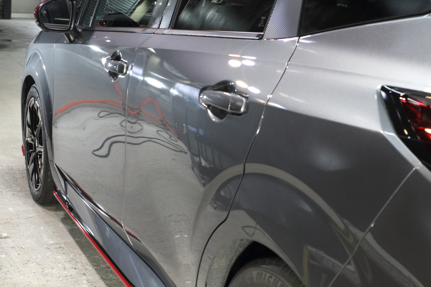 →料金には、汚れの分解除去、状態確認、磨き作業、ヘッドライトやテールレンズ、未塗装樹脂部分、ホイールコーティング、ドアの内側のコーティングも含まれます。
