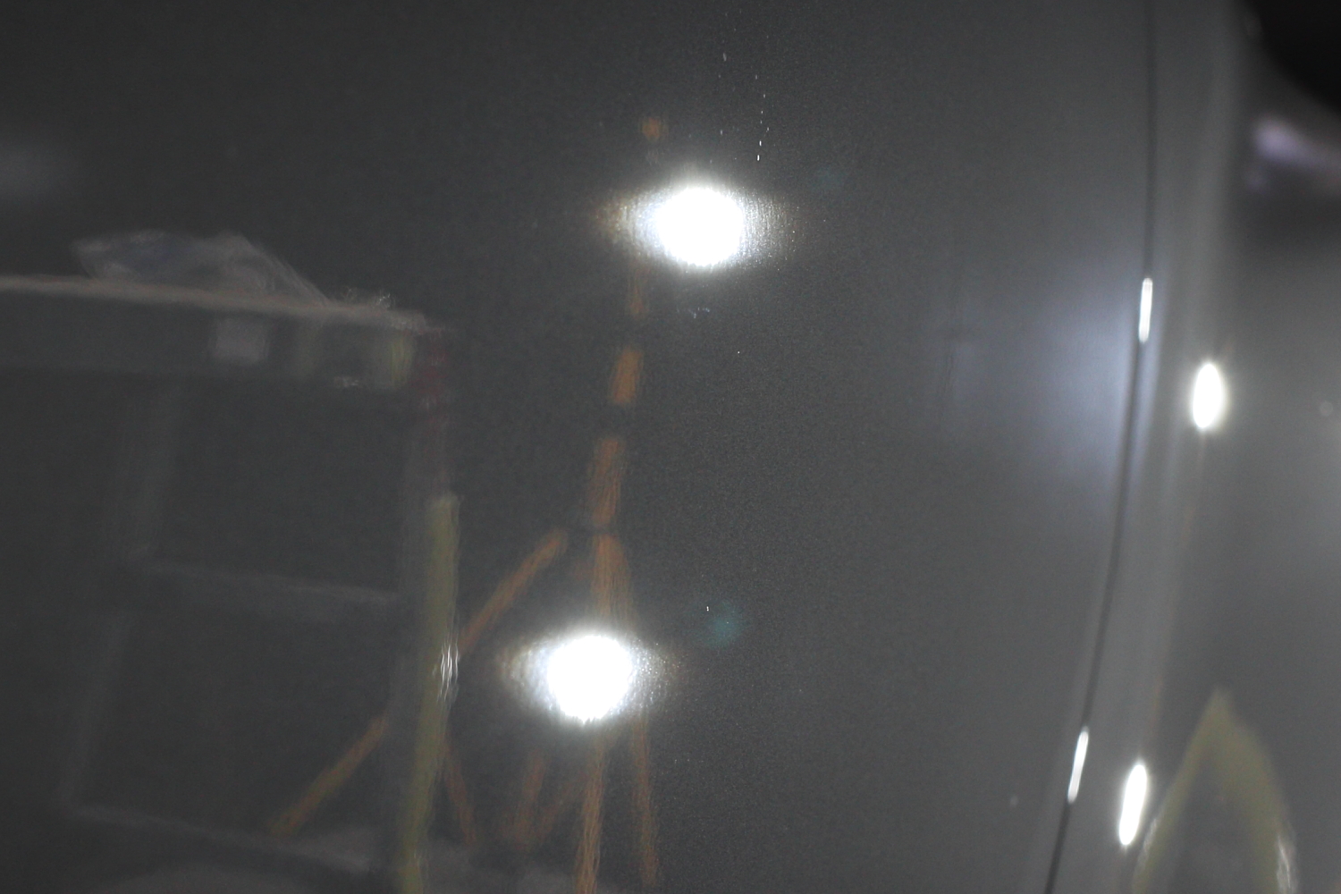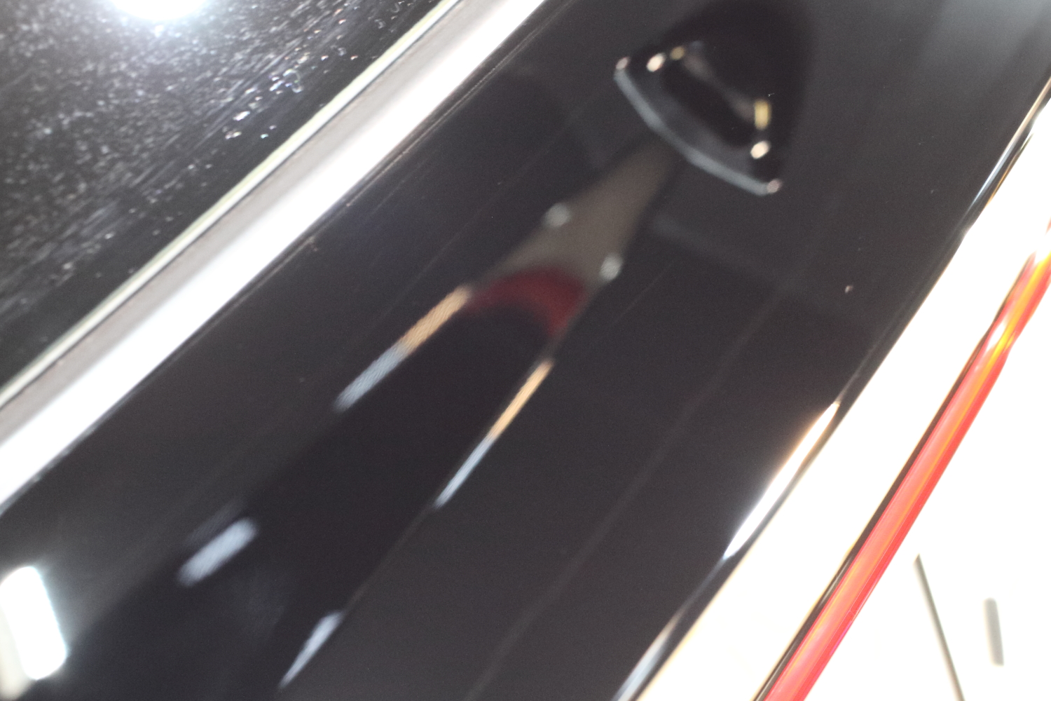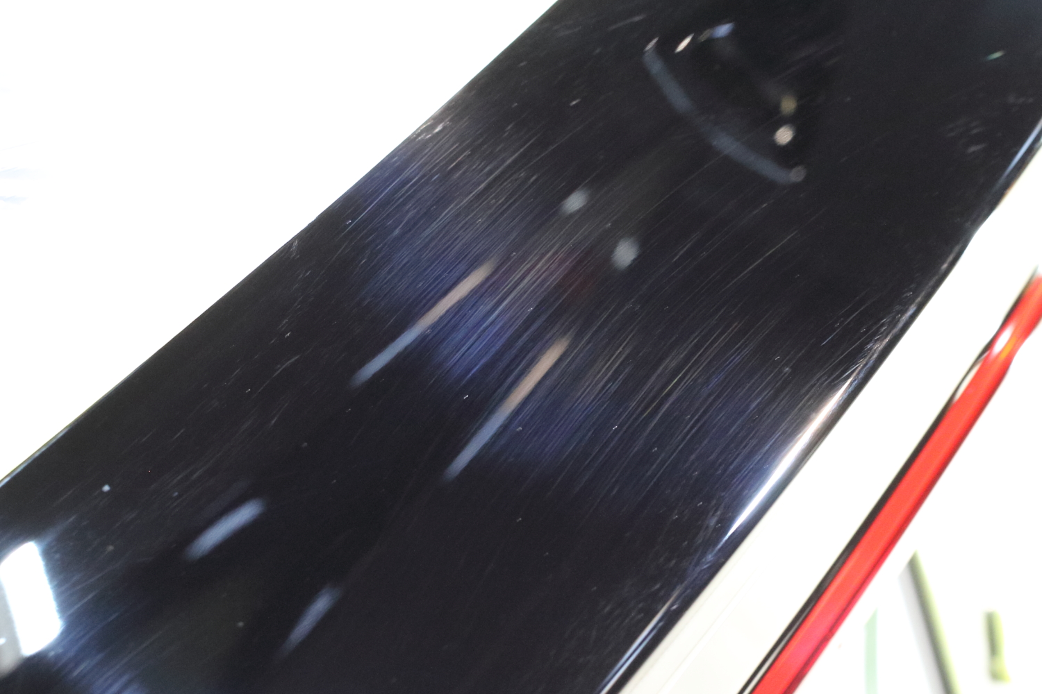 早速ですが、お車の状態はと言いますと、新車ということもありキレイな状態ではございますが、やはり塗装のモヤモヤ、線キズ等はどうしても入ってしまっており少しくすんでしまっている印象です。
