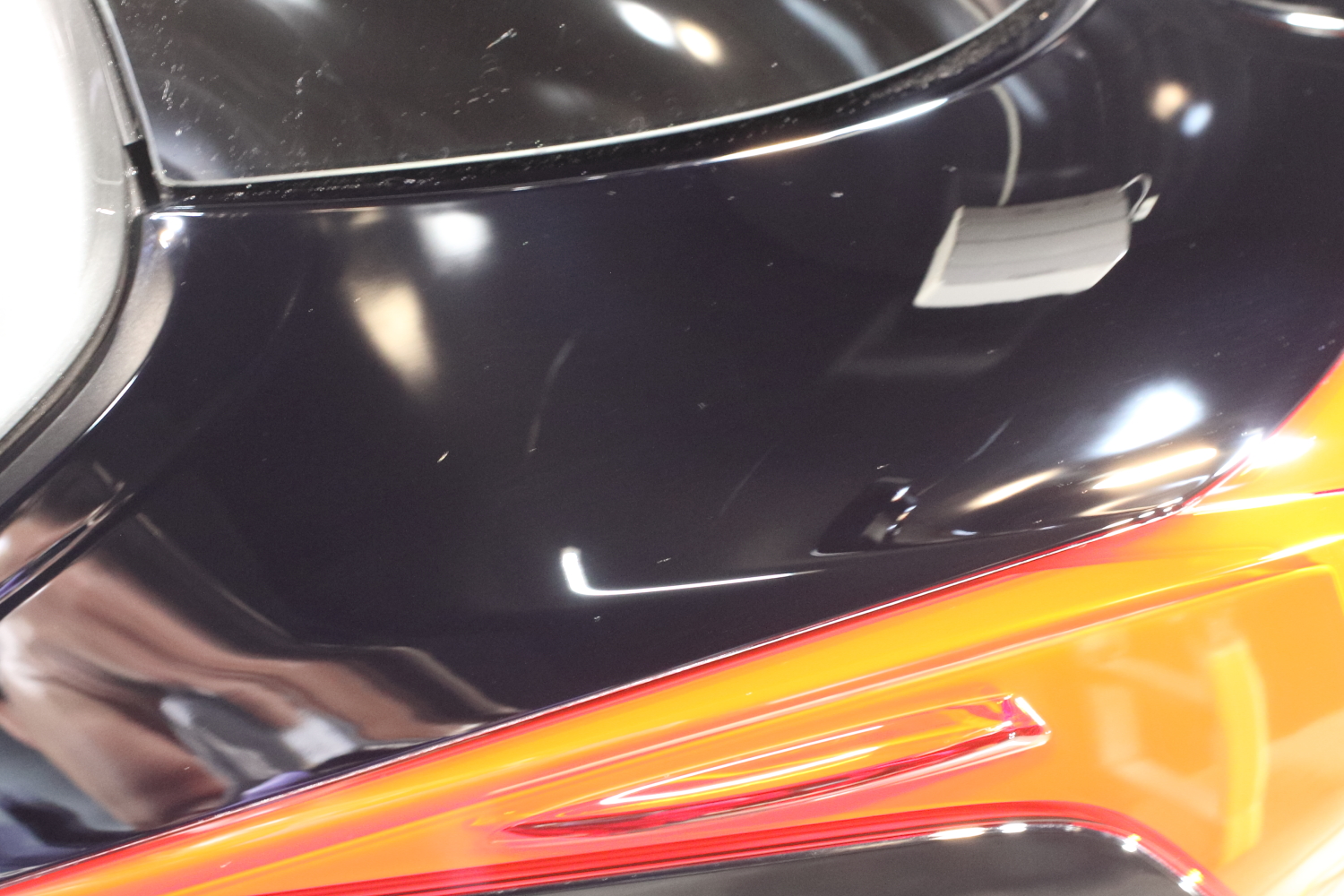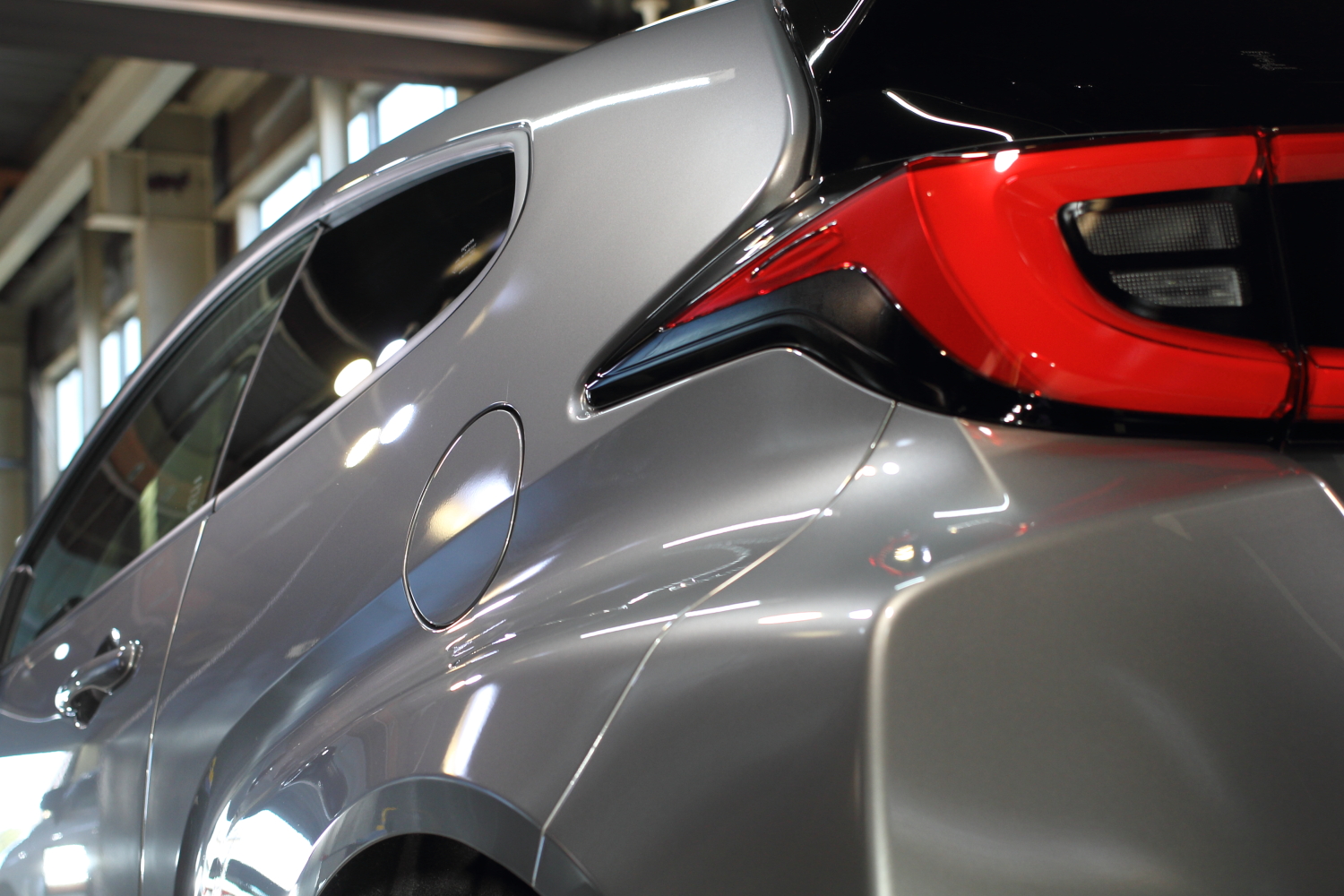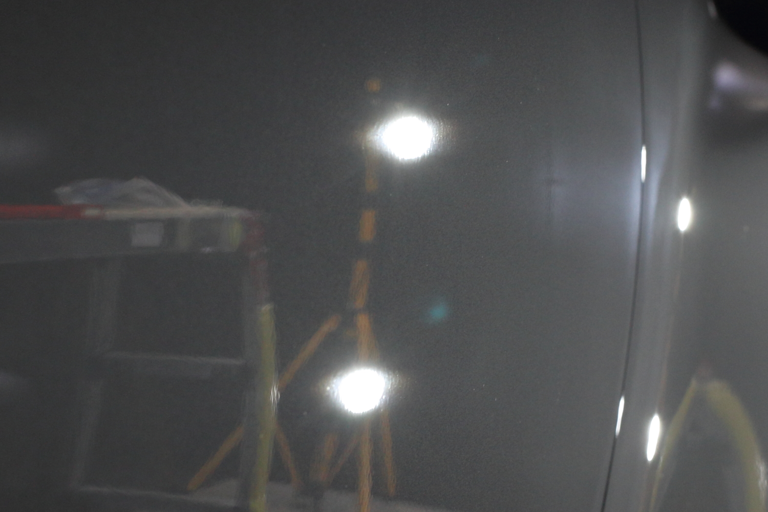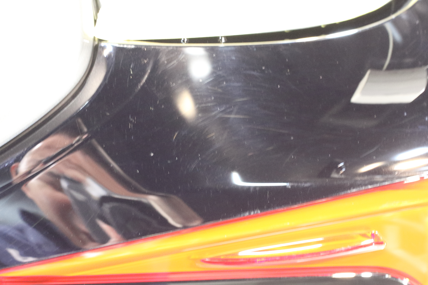 早速ですが、お車の状態はと言いますと、新車ということもありキレイな状態ではございますが、やはり塗装のモヤモヤ、線キズ等はどうしても入ってしまっており少しくすんでしまっている印象です。